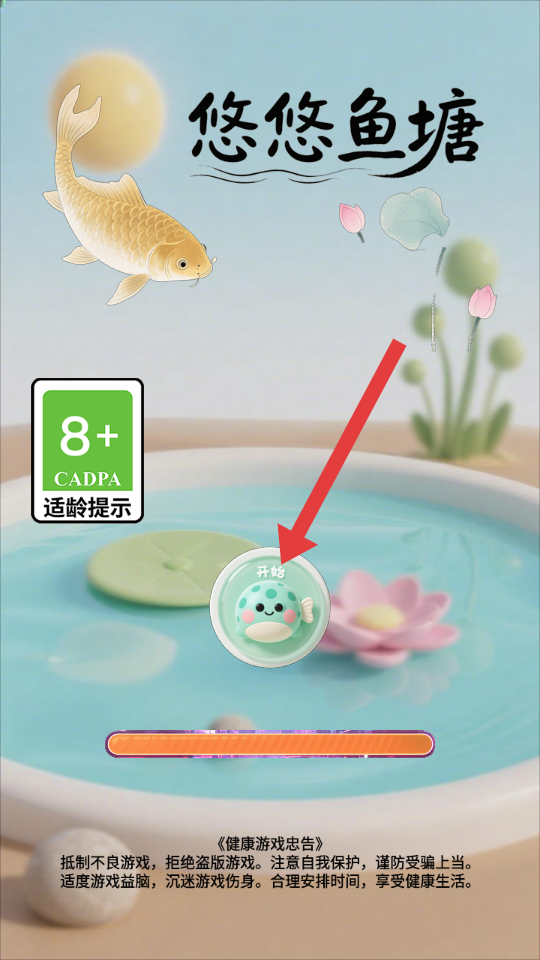 1、在游戏主界面点击【开始】按钮,开启【悠悠鱼塘】游戏之旅。