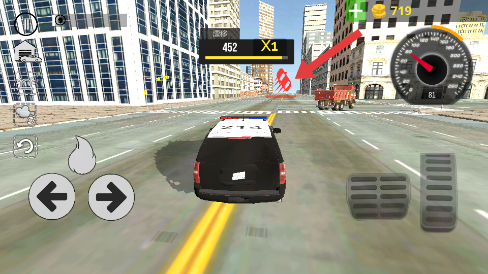4、在城市道路行驶过程中,留意前方如【红框】所示的目标,快速驾驶警车进行抓捕,完成任务获取金币奖励。