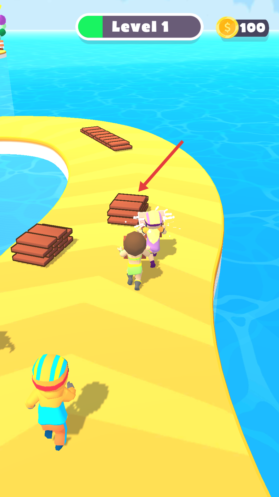 3、利用收集的木板搭建路径,通过障碍物区域。