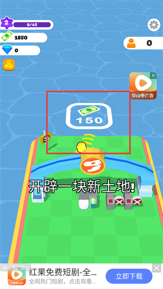 1、开辟新土地需消耗【150】货币,点击对应区域解锁新经营空间,为后续建设与恐龙孵化打基础。