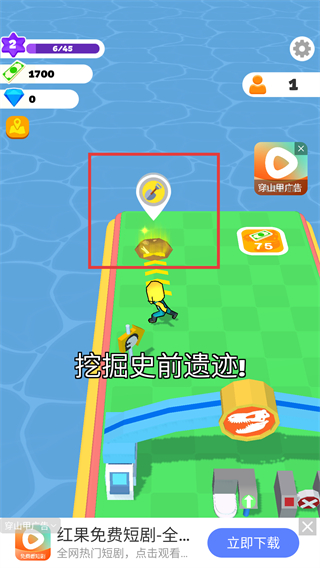 2、挖掘史前遗迹时,点击发光区域,有效推进经营进度与等级提升。