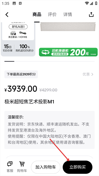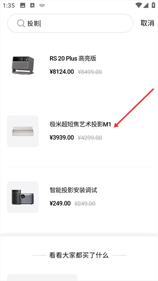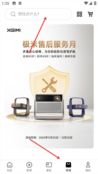 1、进入“商城”页面,在顶部搜索栏中输入投影仪名称,进行搜索。