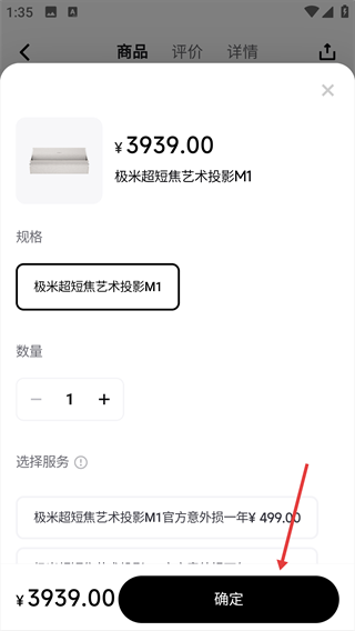4、确认商品规格、数量,点击“确定”按钮,完成商品购买。