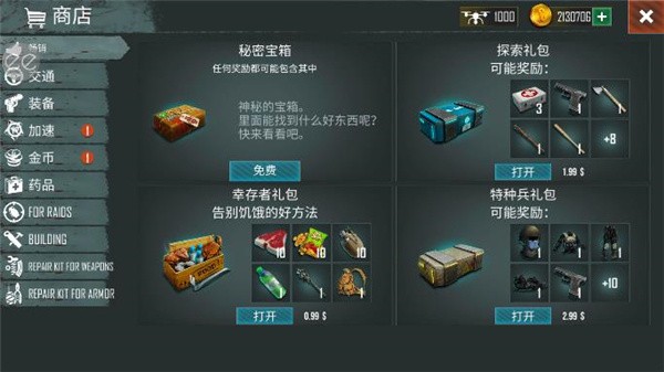 2、点击右侧的商城按键即可打开商城,花费金币购买实用道具。