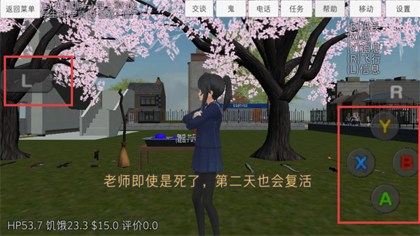 3、场景中红框分别标注左侧【L】按键、右侧【Y/X/B/A】等操作按键。