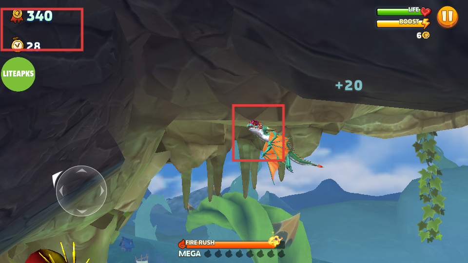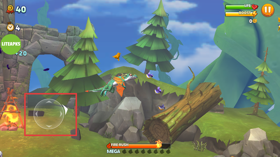 2、使用方向控制移动龙,在场景中吞噬生物,积累分数,提升游戏体验。