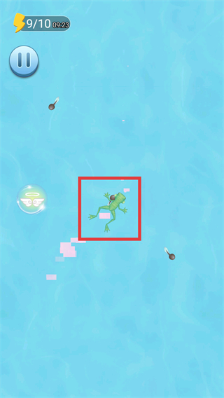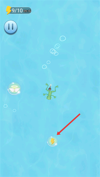 3、收集三只蝌蚪即可进化为青蛙,继续在水中活动持续收集蝌蚪进行升级。