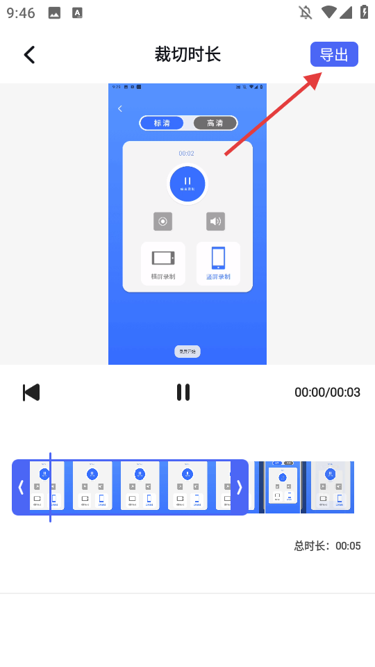 4、点击右上角【导出】,完成视频裁切时长操作。