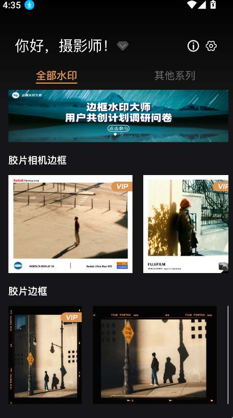 《边框水印大师免费版》是专业图片编辑软件,特色在于拥有多样边框,涵盖尼康、佳能、徕卡等品牌边框及手机拍摄参数显示边框,可直接使用。功能包括去水印和添加水印,操作简单,界面高级,能找到各类高级感水印,满足图片编辑需求,让图片处理更便捷,轻松提升图片质感与专业性。