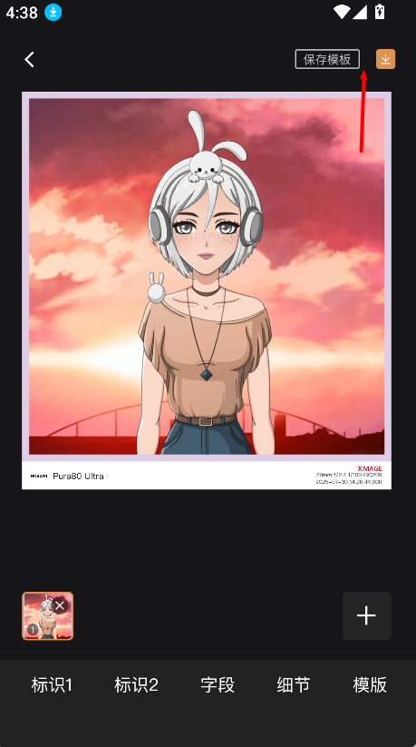 4、将水印添加至所选图片后,在操作界面中找到 “保存模版” 按钮并点击,即可完成当前水印与图片组合的模版保存,方便后续调用。
