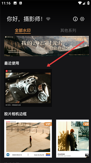 1、打开边框水印大师,进【全部水印】选【最近使用】的水印模板。