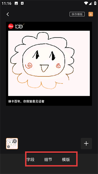 2、进入水印编辑页,我们可以点击底部【细节】、【字段】等选项卡。