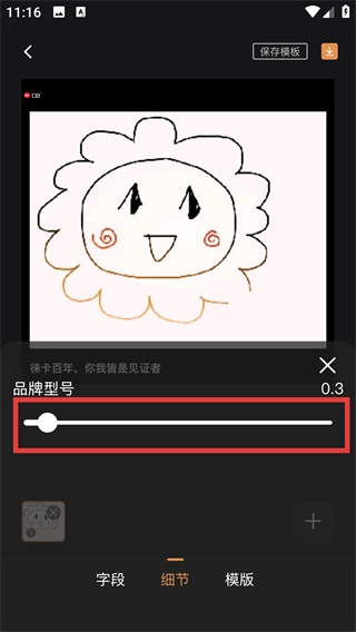 3、在【细节】页面,拖动【品牌型号】滑块调整水印显示的大小。
