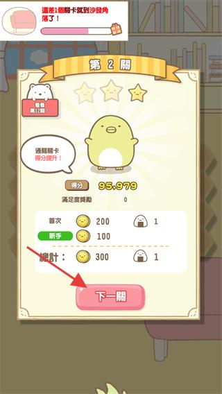 4、完成【第2关】后获得【得分-95.979】,点击【下一关】按钮进入下一个消除关卡。