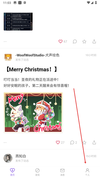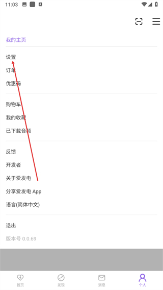 1、打开爱发电应用进入首页,点击底部导航栏右侧的个人选项切换界面。