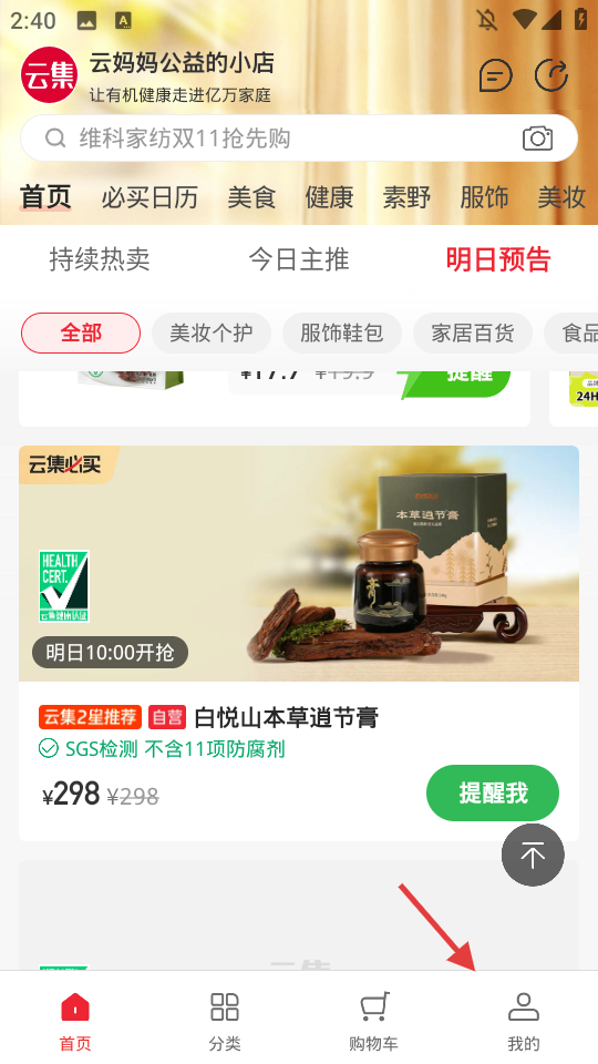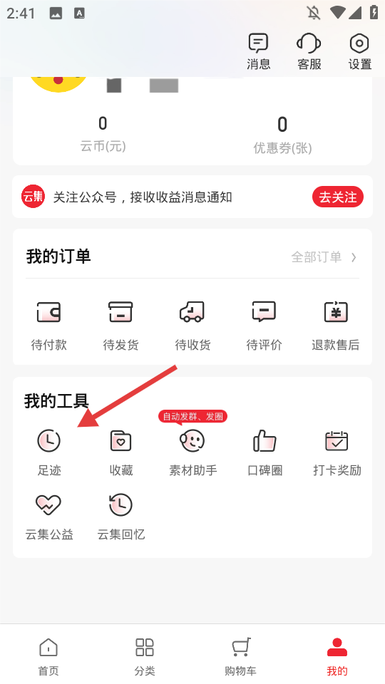 1、下载安装云集app,打开app后点击右下方的“我的”。