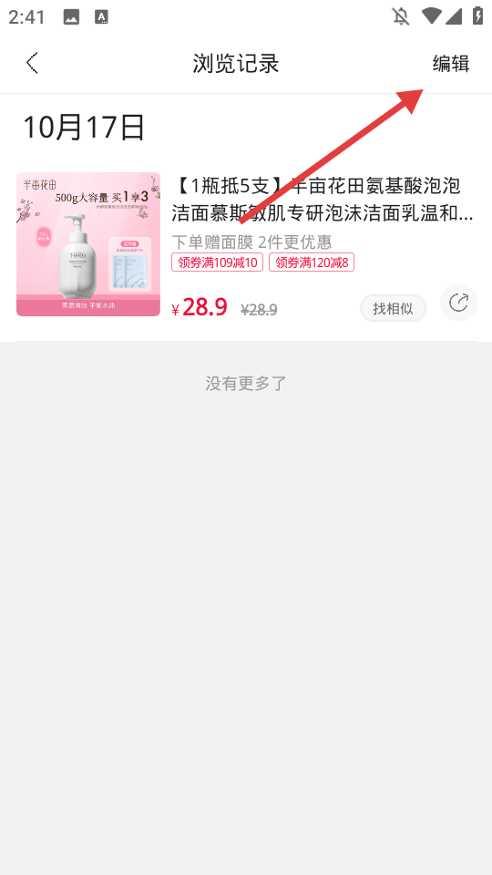3、在浏览记录页面点击【编辑】,进入编辑模式。