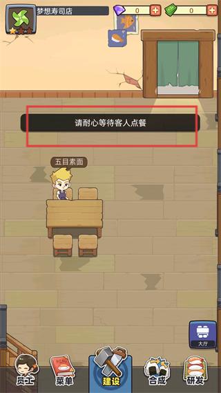2、进入店内后显示【请耐心等待客人点餐】提示,客人就座后准备提供【五目素面】等餐品。