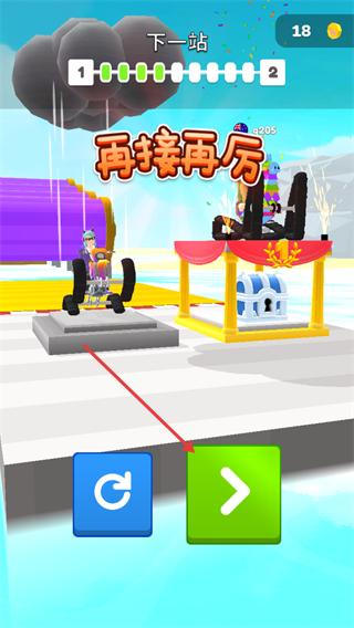4、未通关时点击绿色箭头进入下一站,或点蓝色按钮重新挑战,积累经验优化轨迹绘制。