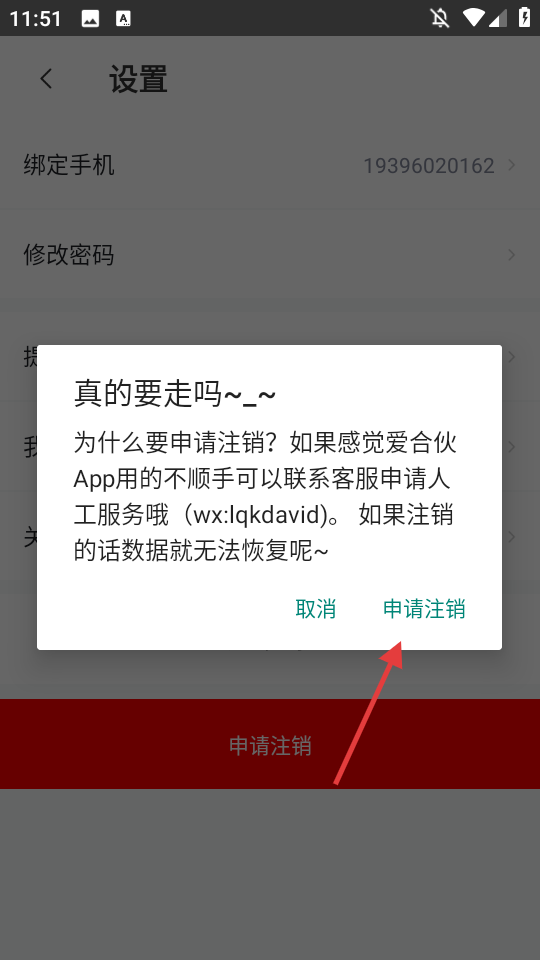 4、在确认框中点击【申请注销】,完成账号注销操作。