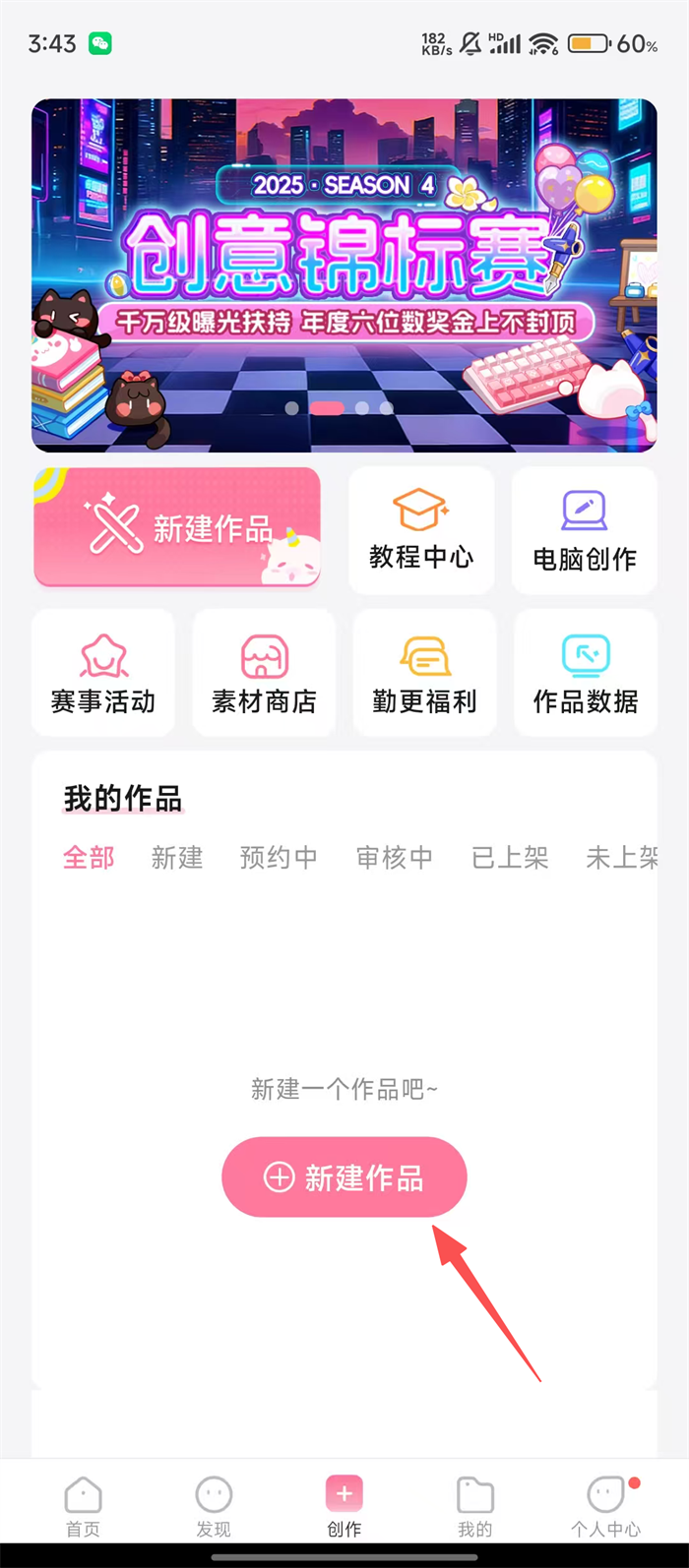 1、打开易次元创作页面,我们可以点击【新建作品】,开启游戏制作的第一步哦。