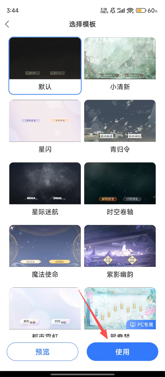 3、进入选择模板页面,挑选喜欢的模板后点击【使用】,即可开始游戏内容创作呢。