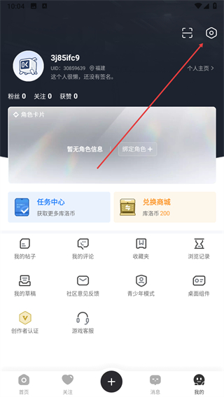 1、打开库街区,点击右上角设置图标。