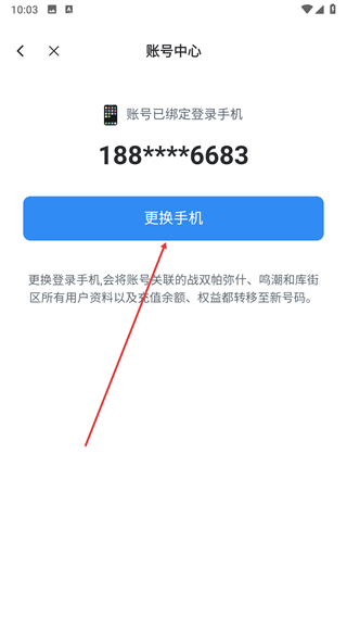 4、在账号中心页面点击更换手机按钮。