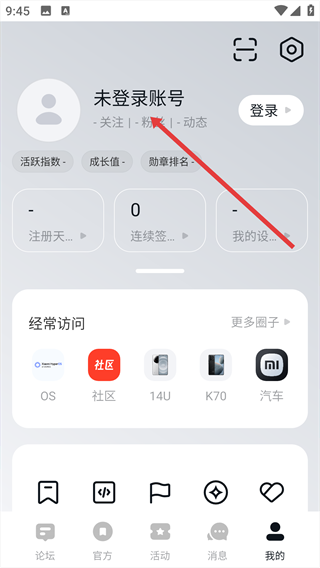 2、在个人中心页面点击【登录】,进入【小米账号登录】页面。