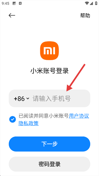 4、填写收到的短信验证码,完成小米账号登录流程。