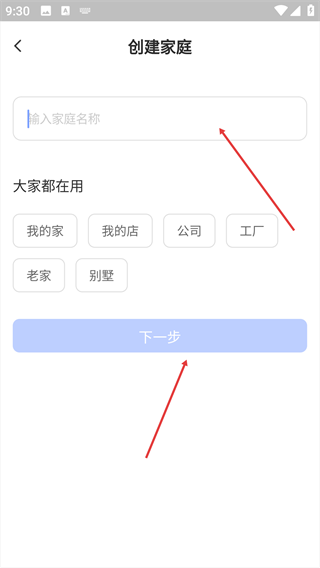 2、点击底部【创建家庭】按钮,启动家庭创建流程。
