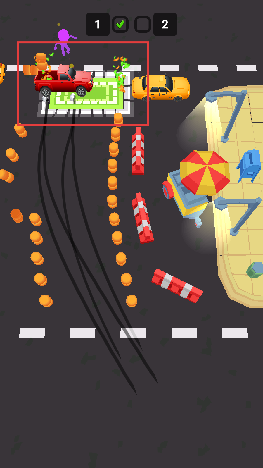 3、继续操控其他车辆,同样停到绿色指定区域。