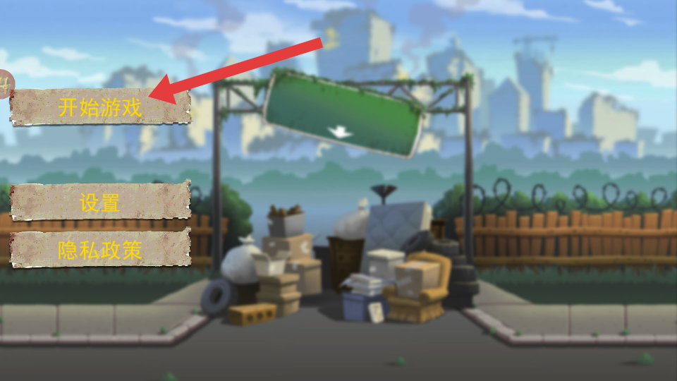 1、在游戏初始界面,点击【开始游戏】按钮,进入射杀平面僵尸的游戏关卡。