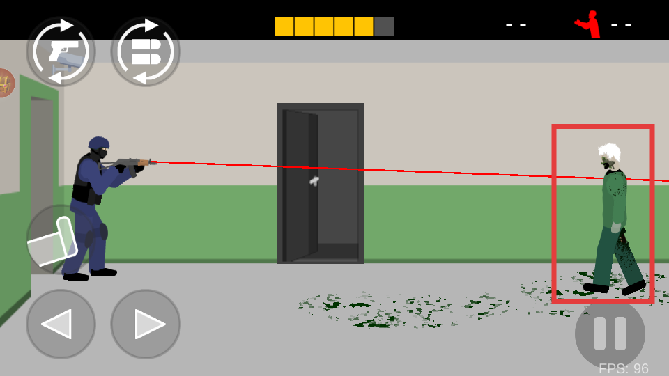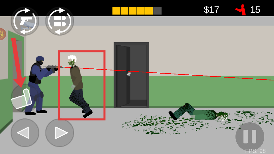 1、基本射击操作:左手控制移动,右手点击射击。注意瞄准僵尸头部可以一击必杀,节约弹药的同时效率更高。