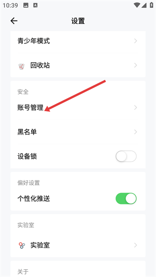 2、接着找到【账号管理】选项,点击进入账号操作页面呀。