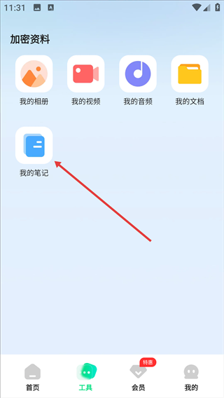 2、选择“我的笔记”选项,进入私密笔记页面。