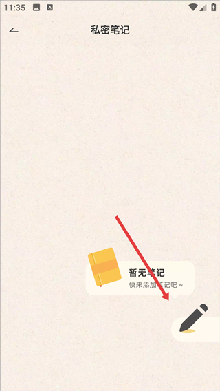 3、在私密笔记页面,点击右下角的笔形按钮,进入新建备忘录的编辑页面。