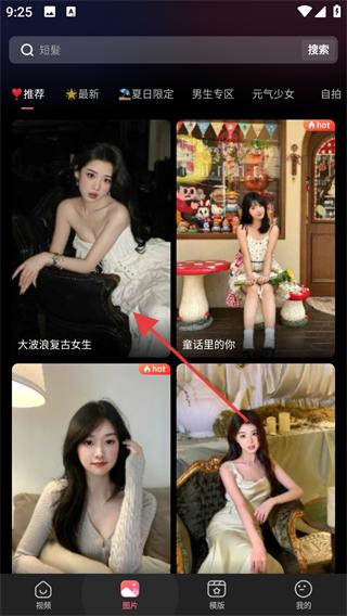 2、在模板列表中选择目标风格(如“大波浪复古女生”),进入该风格的详情页。