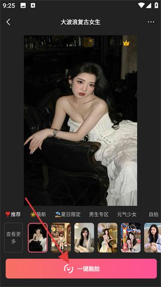 3、进入模板预览界面,选择自己喜欢的风格,编辑完成之后点击一键融脸。