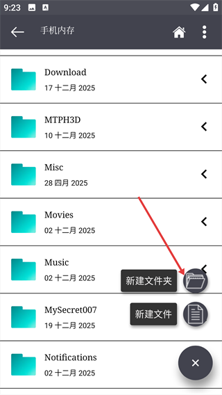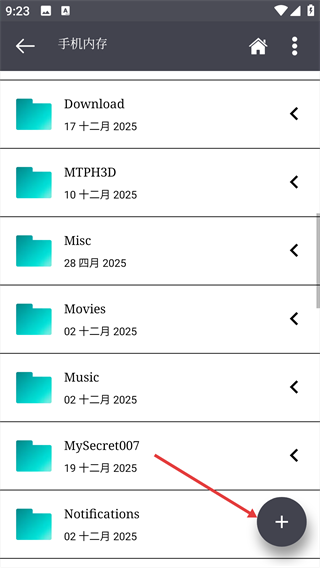 2、进入文件夹列表,点击右下角的加号按钮,弹出操作选项菜单。