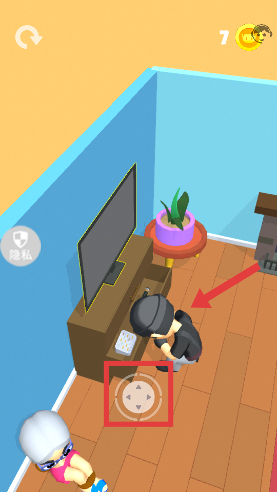 3、到达位置后,幽灵小猫将会进入电视机,用移动键将电视机砸向【小偷】后,将人质救出即可通关。