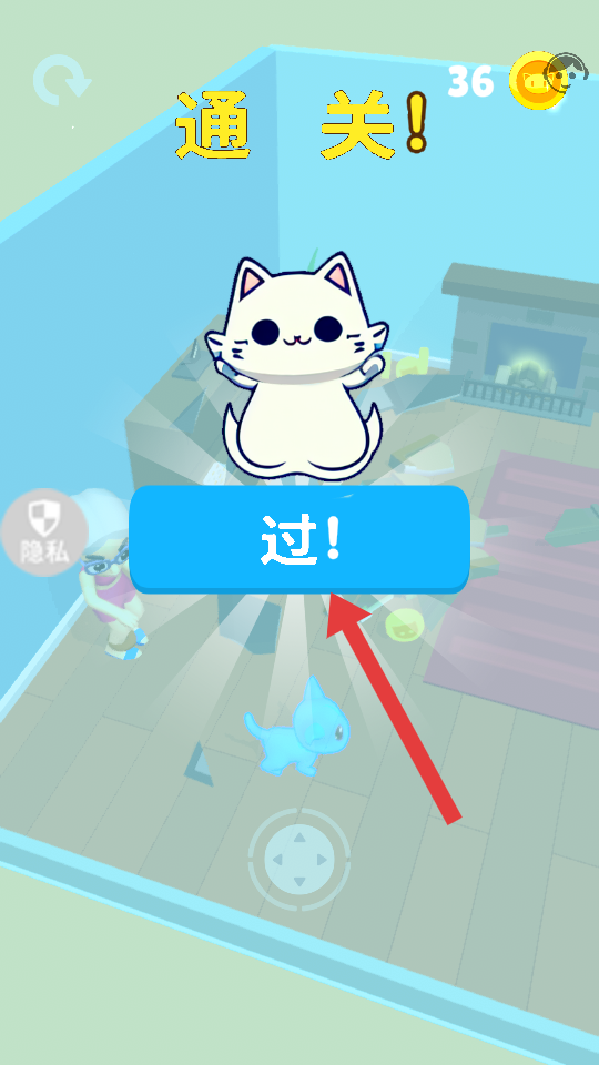 4、完成关卡后,点击【过!】按钮,进入下一关继续游戏。
