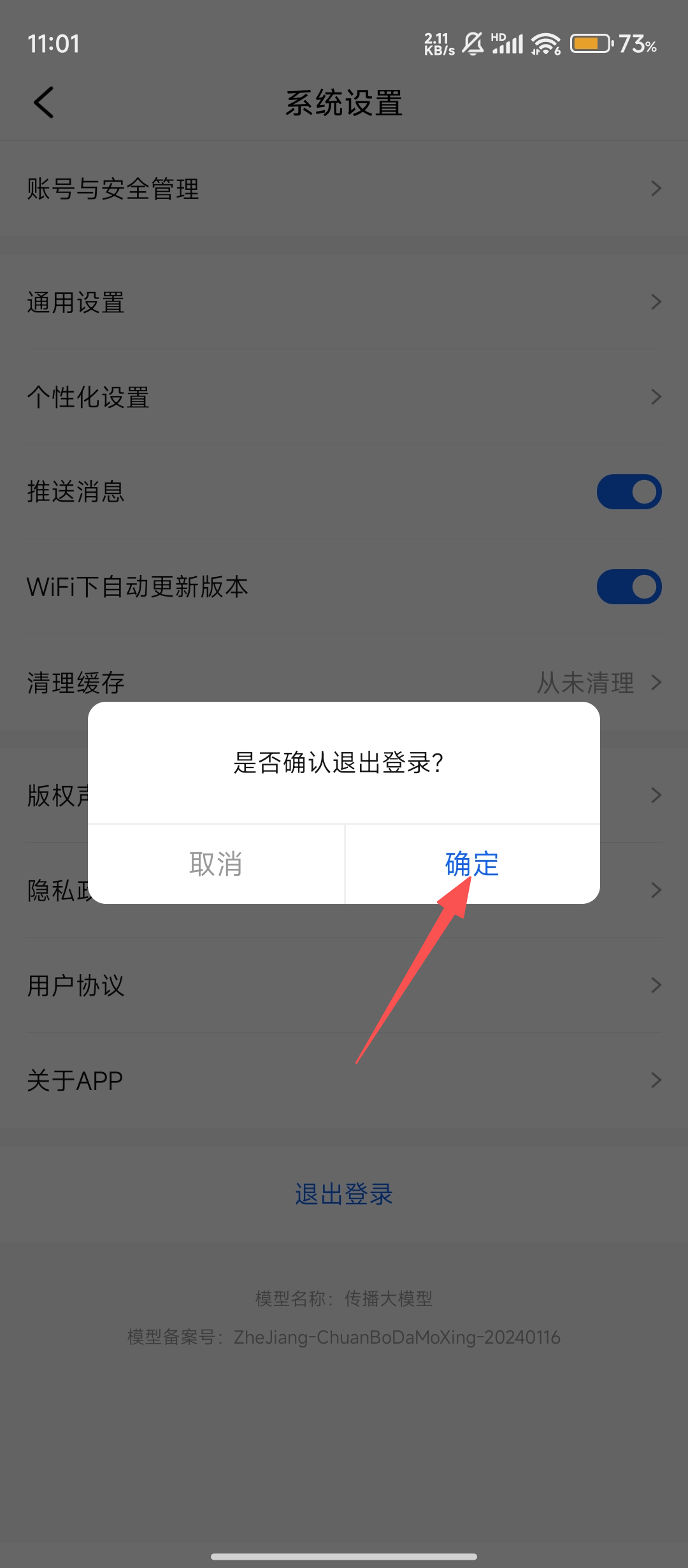 4、在弹出的是否确认退出登录框中,点击【确定】,即可成功退出潮新闻账号,操作简单又顺畅哦。