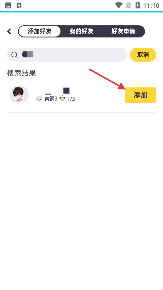 4、在搜索结果中找到目标好友,点击【添加】按钮,完成好友添加操作。