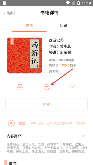 1、打开百听听书APP后选择需要下载的有声书,在介绍界面找到章节,点击进入详情页