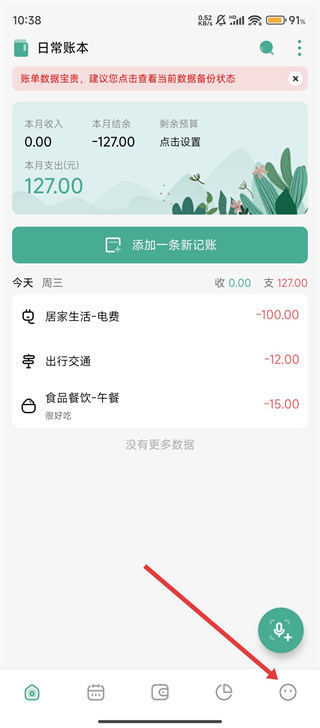 1、打开一木记账App,点击底部【更多】图标,开启Excel账单导入的操作流程哦。
