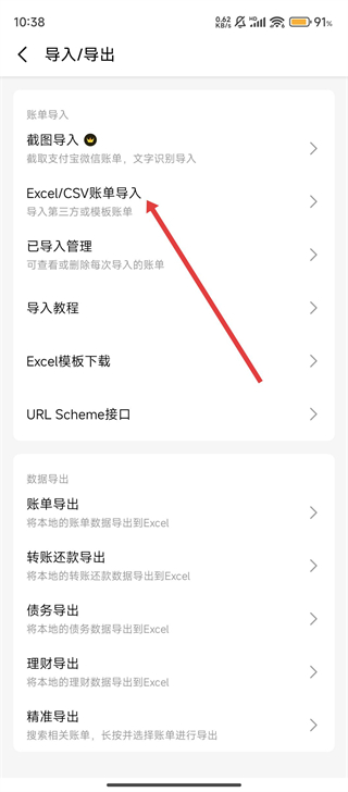 3、进入导入导出页后,选择【Excel或CSV账单导入】,即可进入账单导入的具体流程哦。