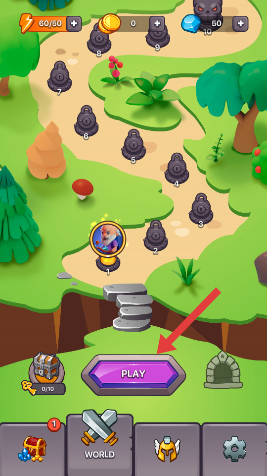 1、在游戏关卡选择界面,点击【PLAY】按钮开始游戏。