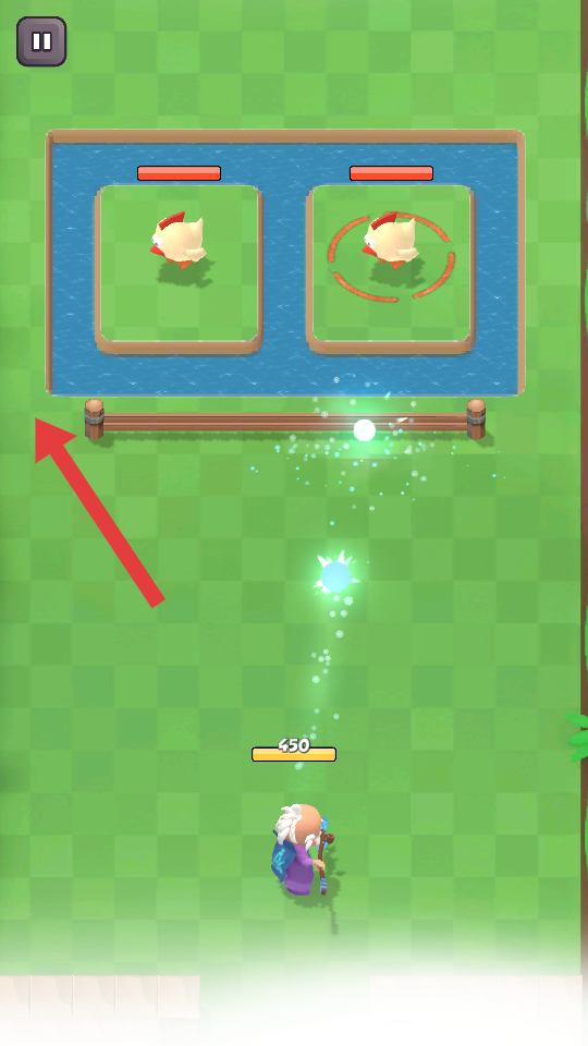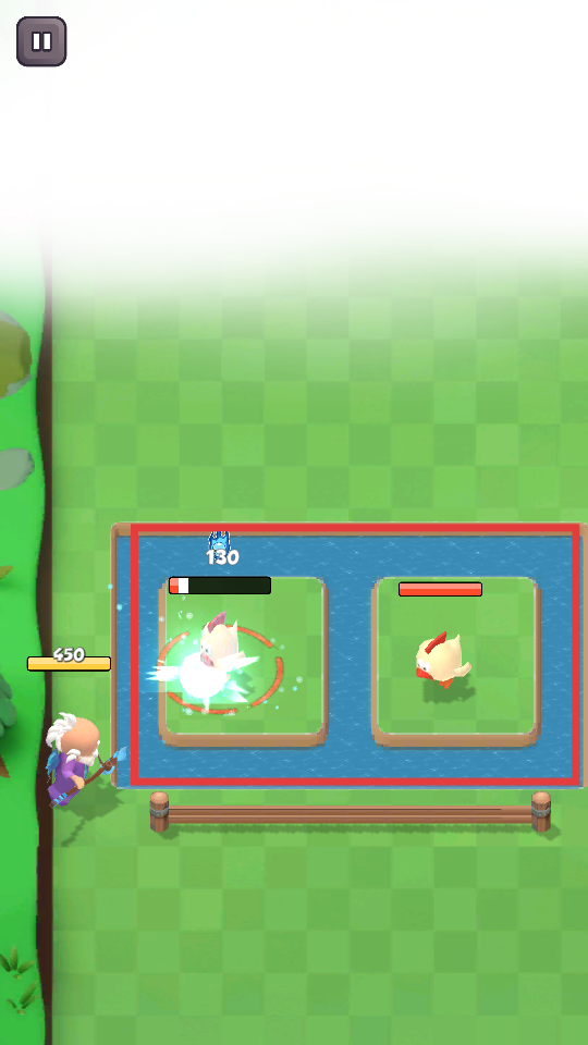 3、跨过障碍后,角色将会自动对小鸡进行攻击,将其消灭即可通关。