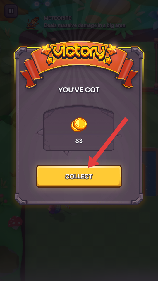 4、成功获胜出现【VICTORY】界面后,点击【COLLECT】按钮领取【金币】奖励。